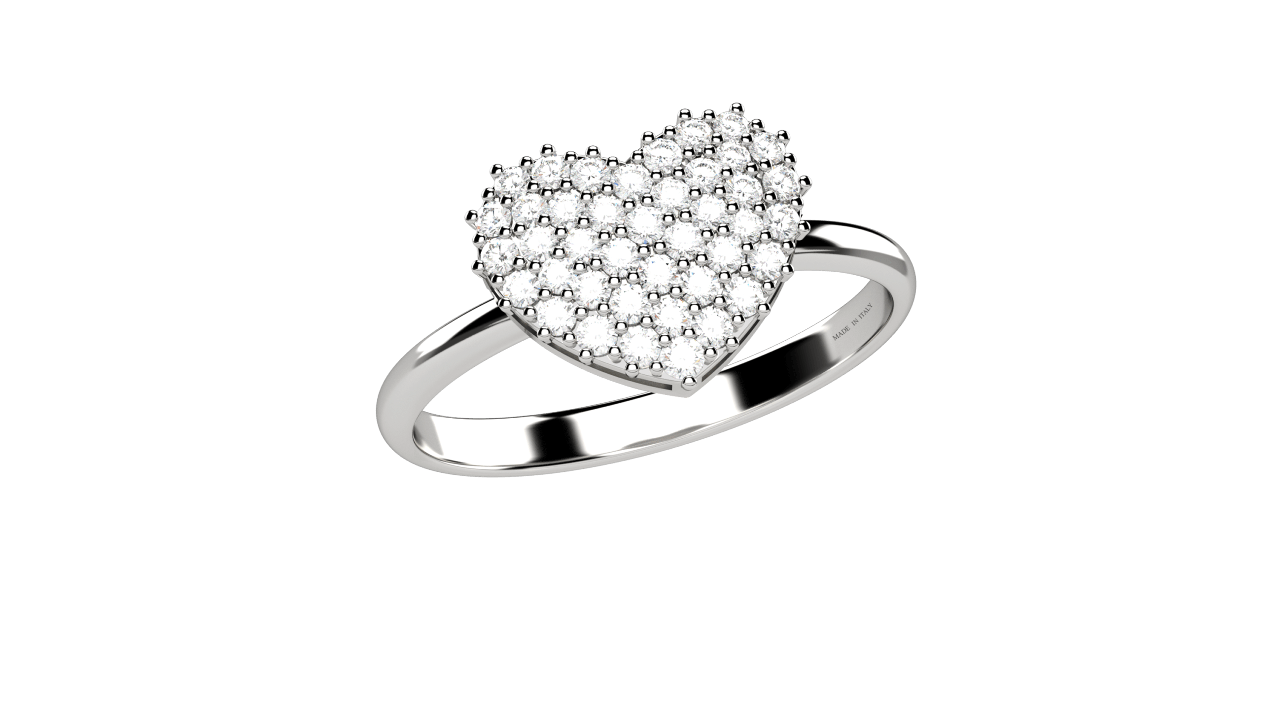 Anello cuore in oro bianco 18KT con pavé di diamanti