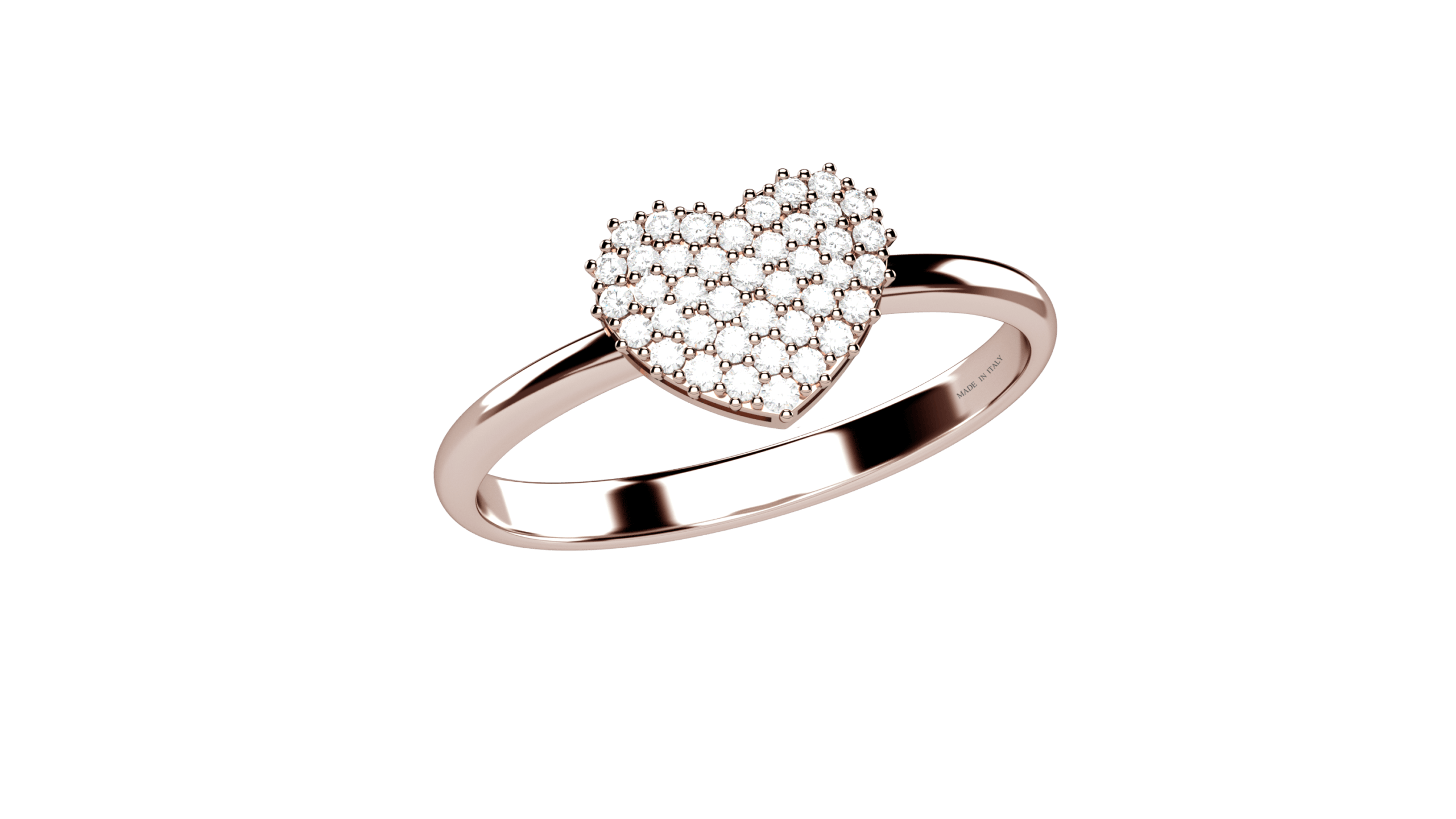 Anello a cuore in oro rosa 18 carati con pavé di diamanti. Un simbolo d’amore impreziosito dalla luce dei diamanti. Peso oro 2.0g, diamanti 0.16ct.