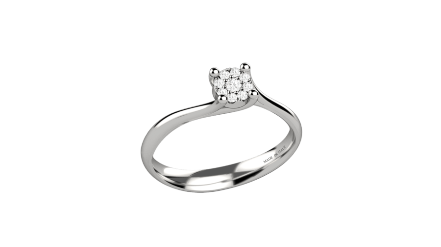 Anello solitario in oro bianco 18KT con diamanti