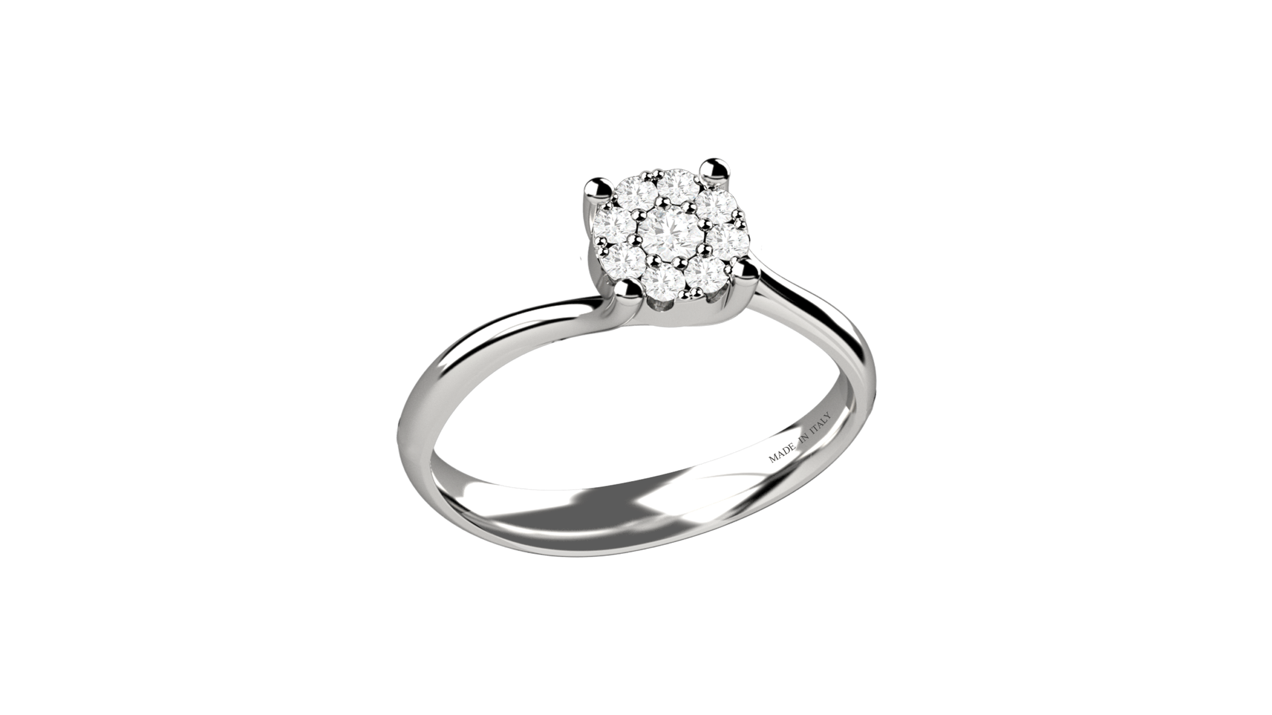 Anello solitario magic, in oro bianco 18KT, grammi 2.1, diamanti ct 0.2