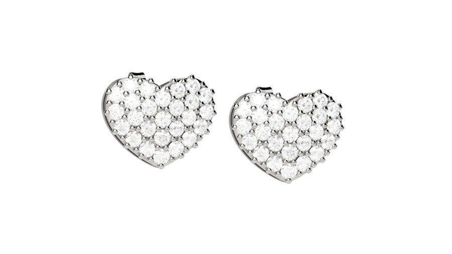 Orecchini cuore in oro bianco 18KT con pavé di diamanti
