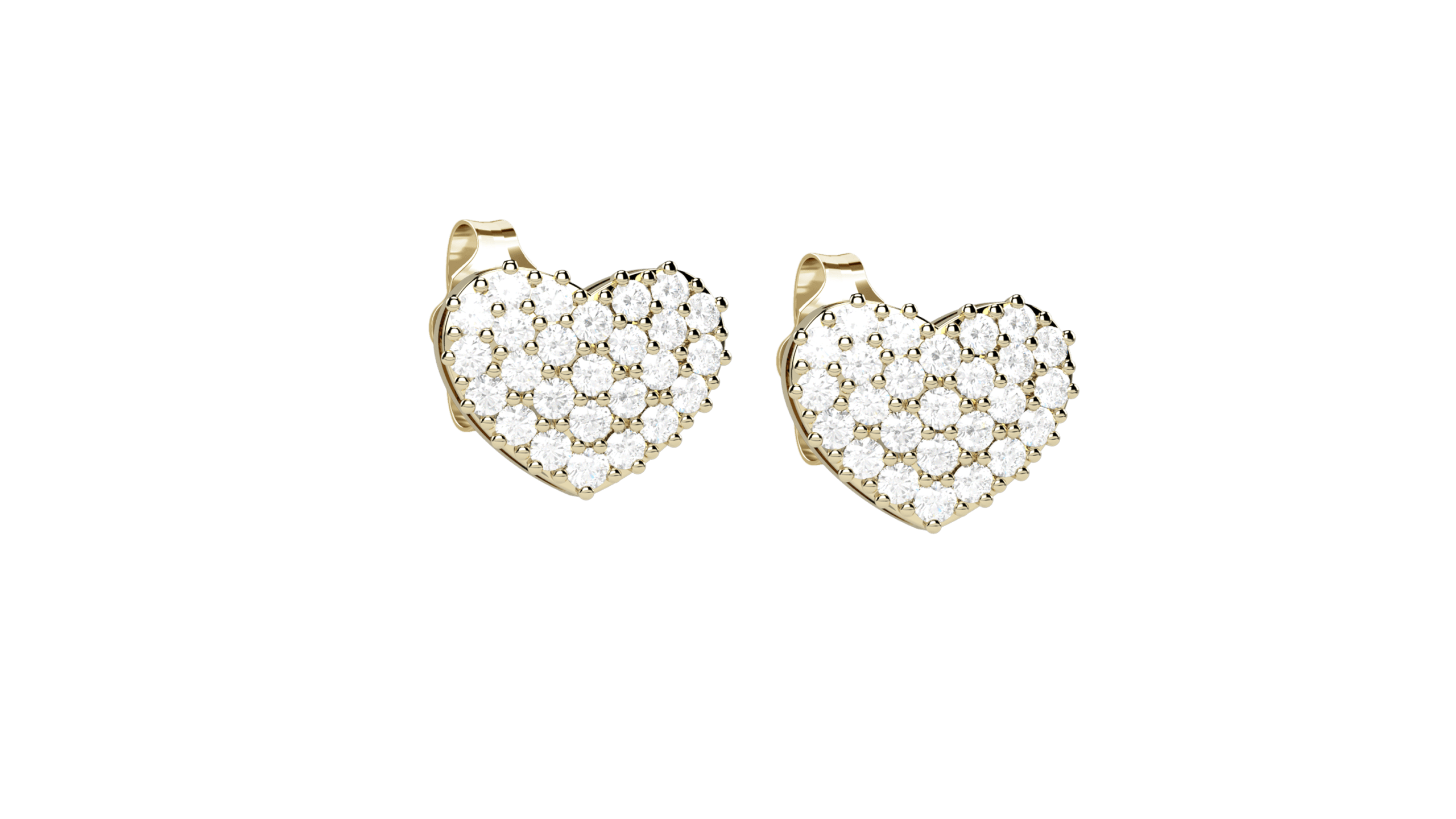 Orecchini cuore in oro giallo 18KT con pavé di diamanti