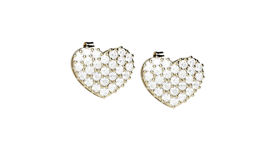 Orecchini cuore in oro giallo 18KT con pavé di diamanti