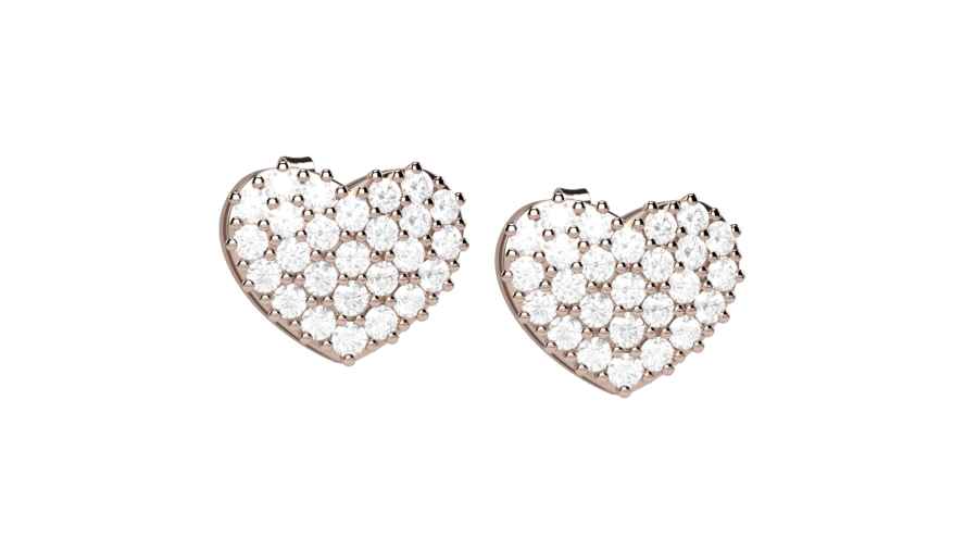 Orecchini cuore in oro rosa 18KT con pavé di diamanti
