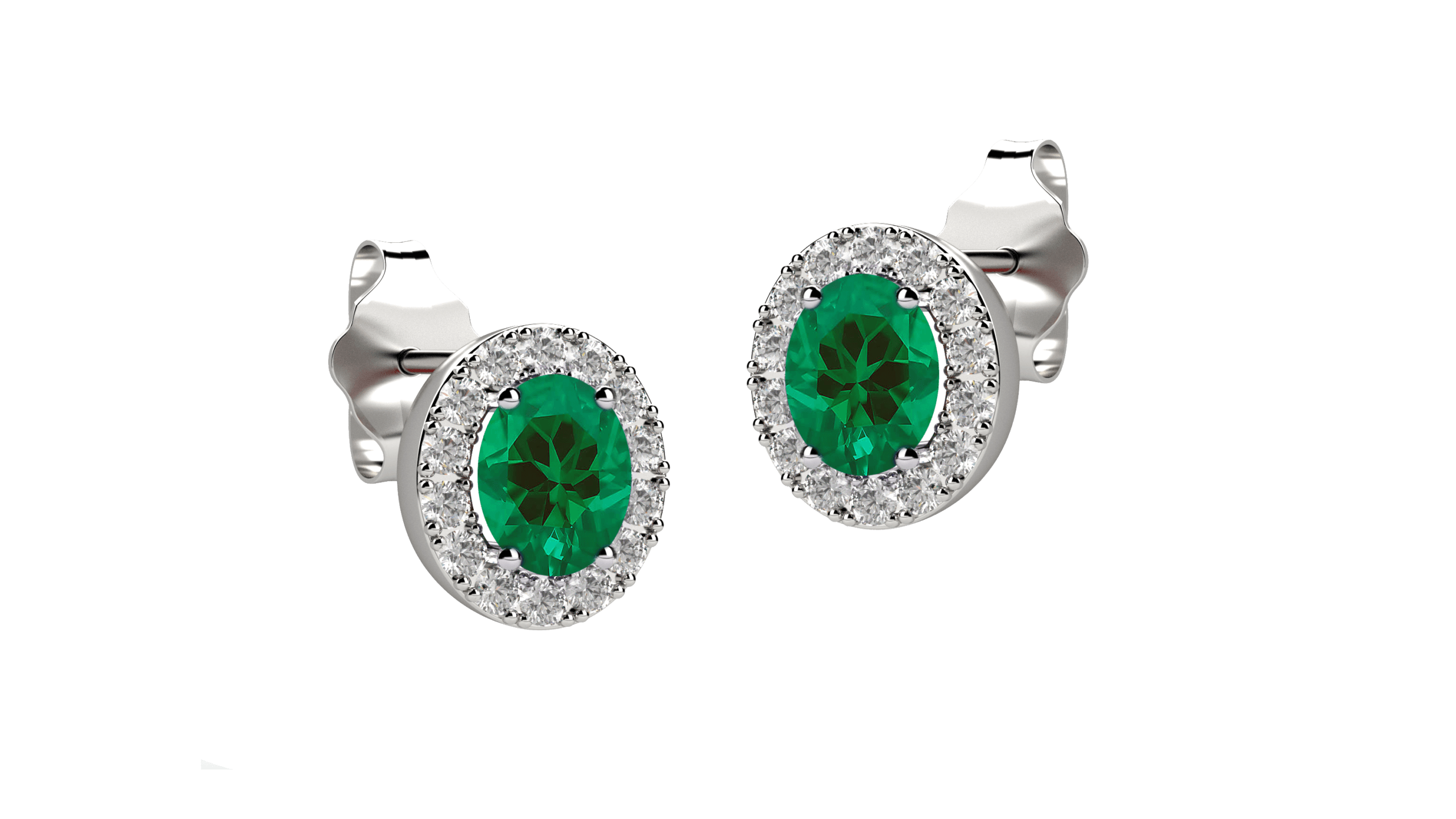 Orecchini halo in oro bianco 18KT con smeraldo e diamanti