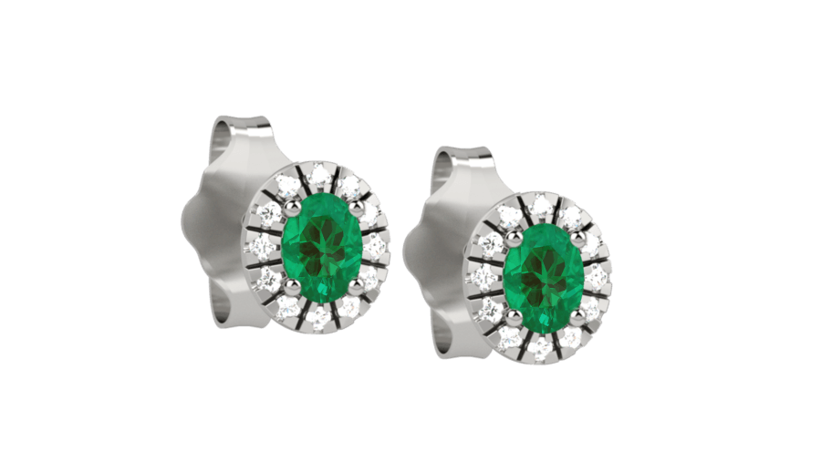 Orecchini halo in oro bianco 18KT con smeraldo e diamanti