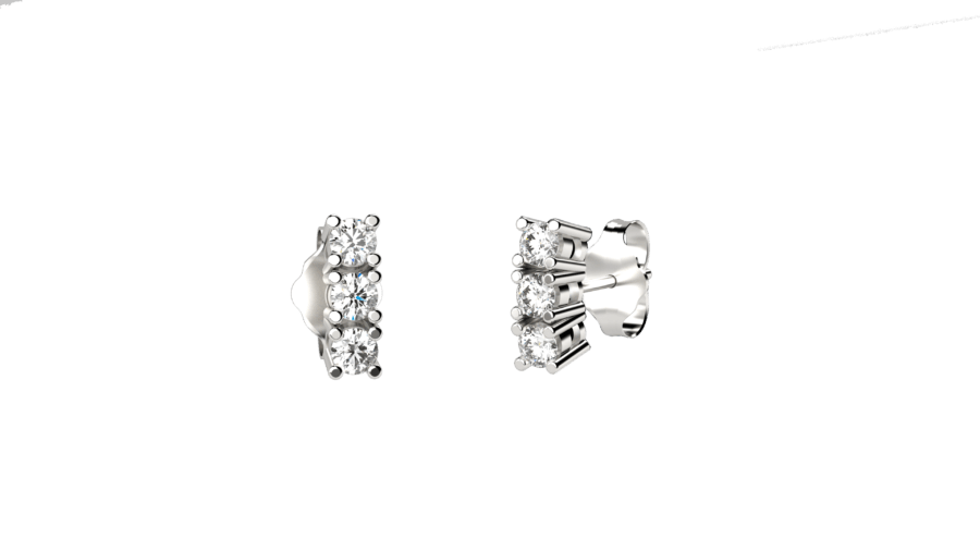 Orecchini trilogy in oro bianco 18 carati con tre diamanti in montatura a griffe. Simbolo di passato, presente e futuro, questo gioiello è un classico intramontabile della gioielleria italiana. Peso oro 2.3g, diamanti 0.54ct.
