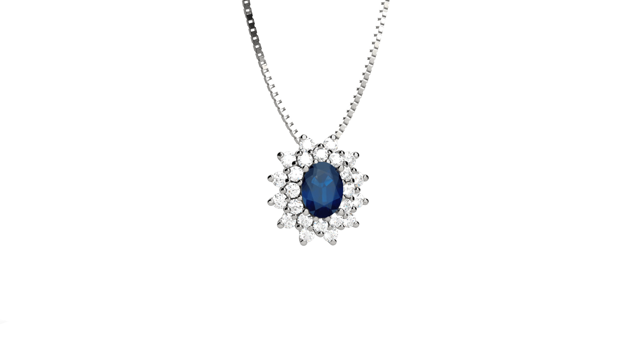 Pendente classico in oro bianco 18KT con zaffiro e diamanti