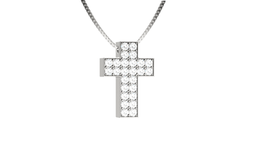 Pendente croce in oro bianco 18KT con pavé di diamanti