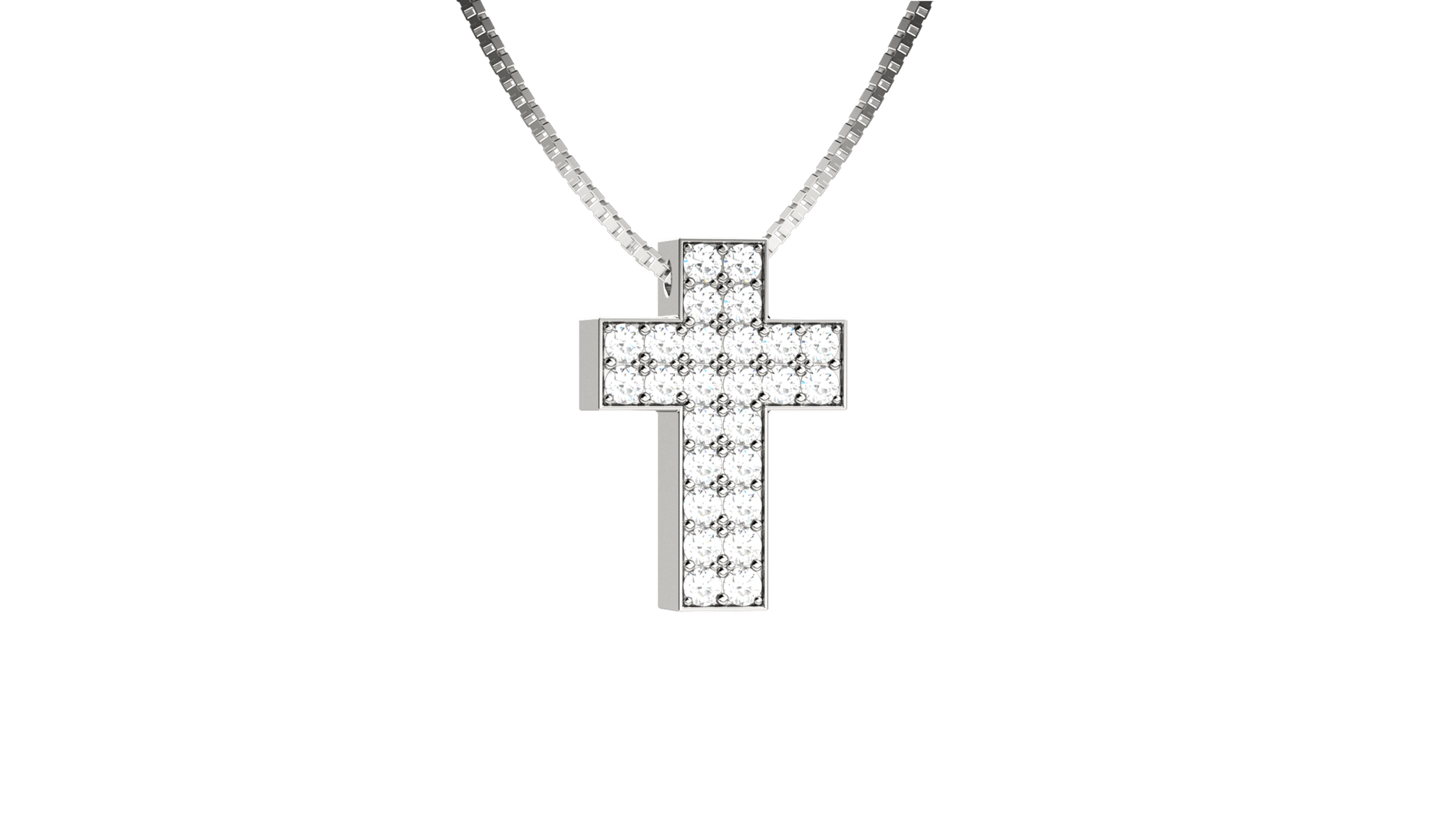 Pendente croce in oro bianco 18KT con pavé di diamanti