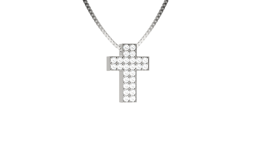 Pendente croce in oro bianco 18KT con pavé di diamanti